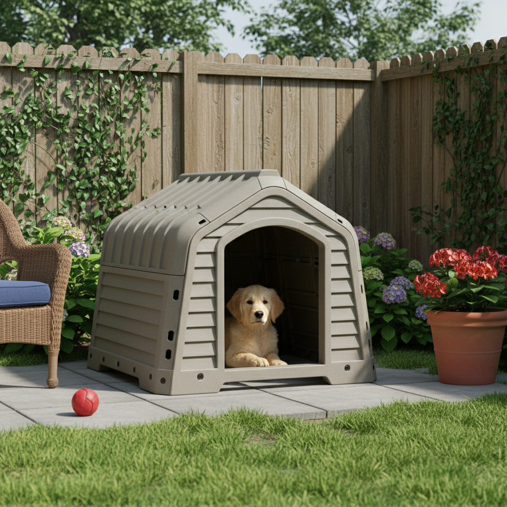 Durable All-Weather Plastic Dog House | Outdoor Pet Shelter for All Seasons