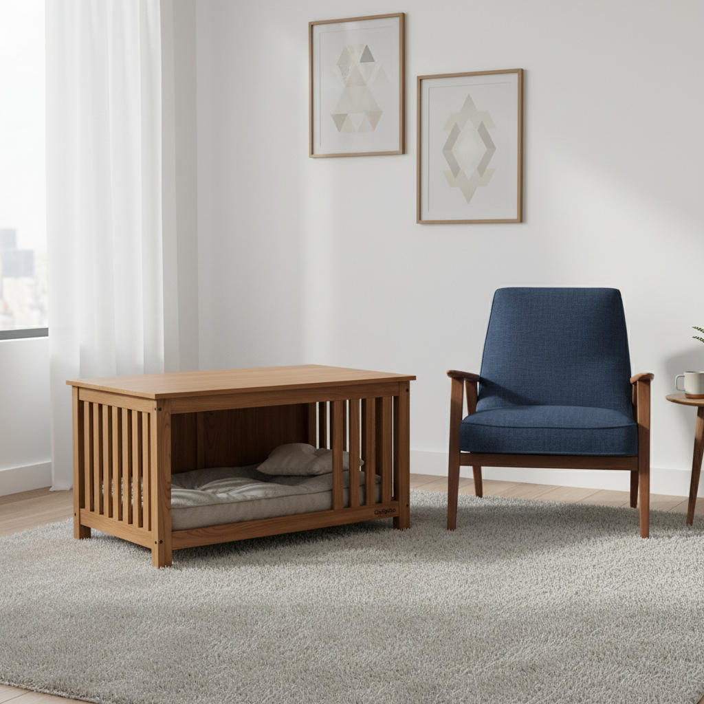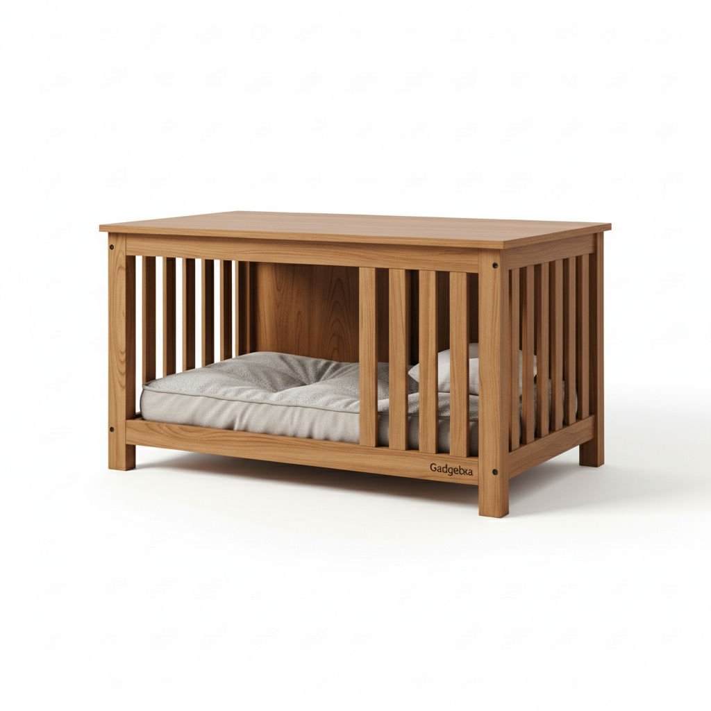 Gadgetxa Modern Indoor Dog House | Wooden Pet Crate Furniture & Cozy Pet Bed
